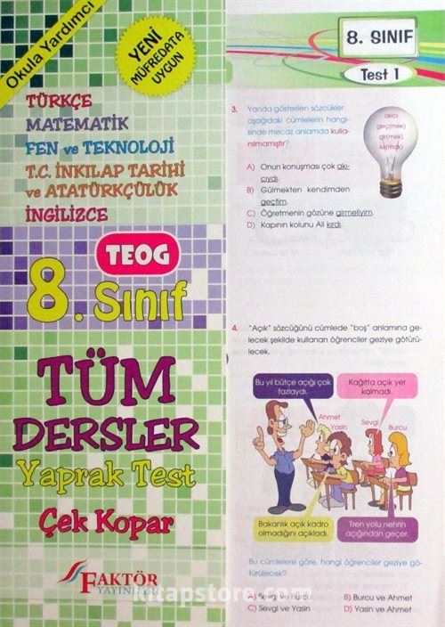 8. Sınıf Tüm Dersler Yaprak Test