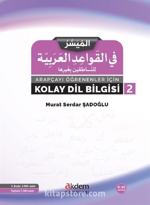 Arapçayı Öğrenenler İçin Kolay Dil Bilgisi serisinin ikinci kitabı olan ve orta seviye dil düzeyini esas alan eser, yeni baskısında içerik ve tasarım açısından düzeltmeler ve yenilikler içeriyor. Üç bölüme ayrılan kitapta; konular öğrenme sürecindeki algıya hitap edecek şekilde kolaydan zora doğru ilerlemektedir.