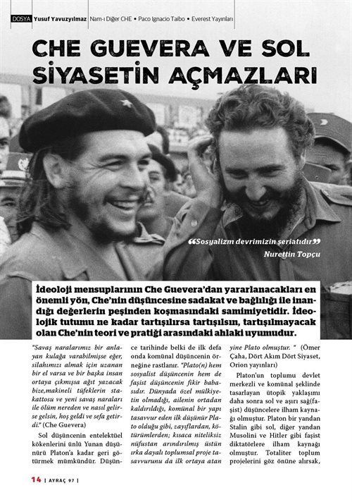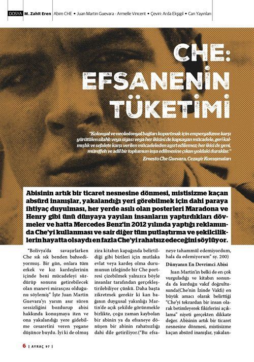 AYRAÇ dergisi, ölümünün 50.yılında "Che Efsanesini" inceliyor. Onun popüler kültürdeki karşılığını ve zihinlerde bıraktığı algıyı tartışmaya açıyor. Ve Che'nin önüne -bilerek ya da bilmeyerek- üflenen sis perdesini aralamayı amaçlıyor.