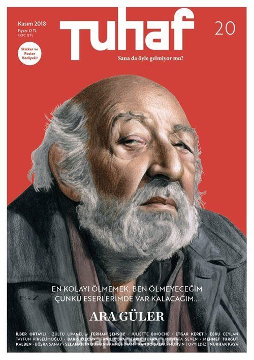Geçtiğimiz ay Cumhuriyet kapağı ve dosyasıyla çıkan dergi Kasım sayısında tüm okuyucularını kısa bir süre önce kaybettiğimiz, derginin yazarlarından, usta foto muhabiri Ara Güler kapağı ve dosyası ile selamlıyor. 'Sana da öyle gelmiyor mu?' mottosuyla çıkan dergide Ara Güler için hazırlanan dosyada usta foto muhabiri tarih profesörü İlber Ortaylı, yazar ve müzisyen Zülfü Livaneli, tiyatrocu Ferhan Şensoy, fotoğrafçılar Mehmet Turgut,Ebru Ceylan ve Mustafa Seven anlattı.