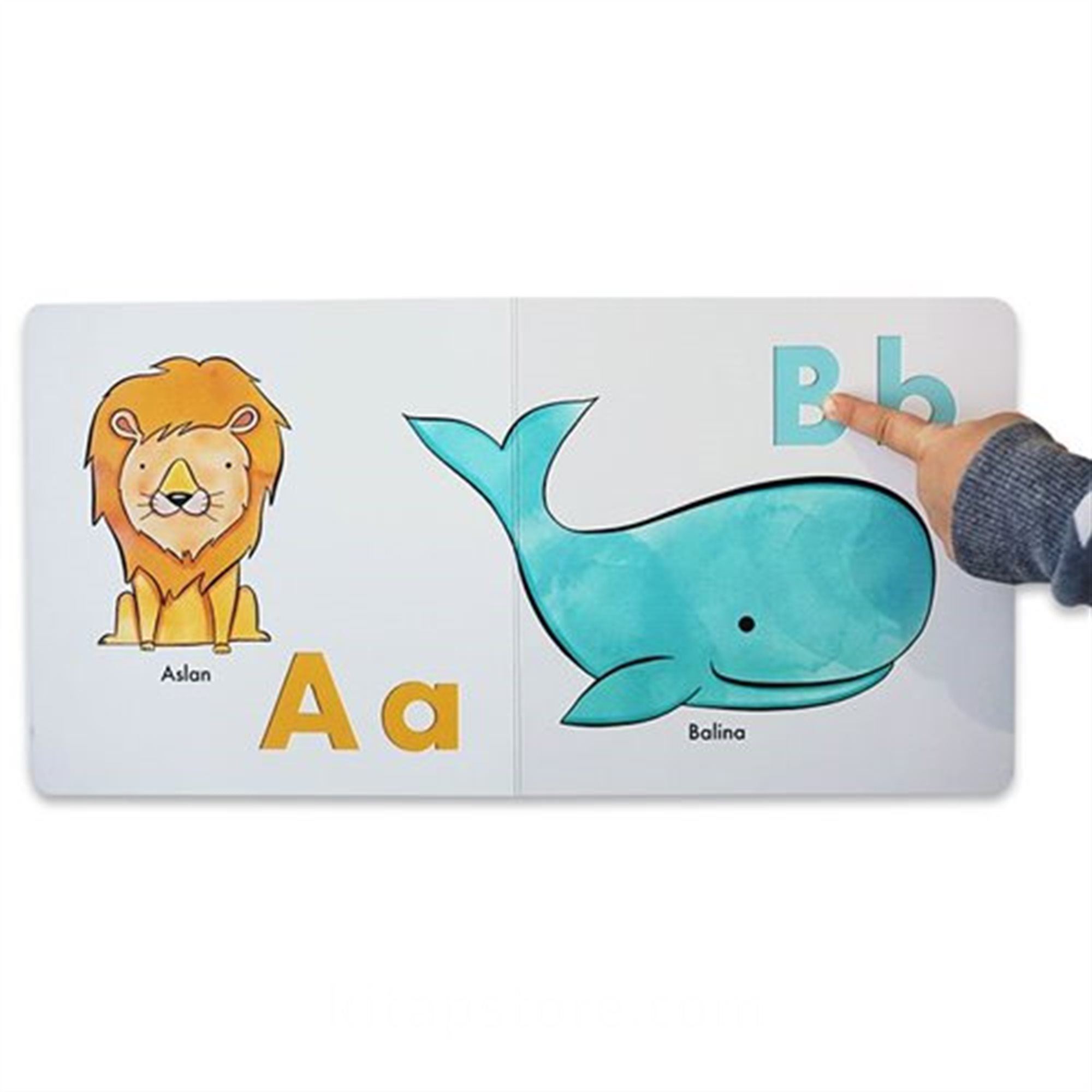Renkli hayvan çizimleriyle dolu bu alfabe kitabında harfler, sayfalara derin olarak basılmıştır. Çocuklar sayfalara dokunduklarında parmakları harflerin içine girer ve harfin şeklini hisseder. Harfler, hayvan isimleriyle birlikte seslendirildiğinde, çocuklar o harfin sesini öğrenir. A harfini aslan ile eşleştirir ve Aaaa sesini hatırlar...