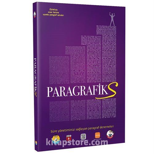 Süre yönetimini sağlayan ParagrafikS, paragraf sorularında en yüksek neti hedefleyen adaylar için hazırlandı. Paragrafik serisinin bu ikinci kitabı sıradan paragraf kitaplarından üç yönüyle çok farklı; S1 Sınav Tarzı: Tamamı yeni nesil sorulardan oluşan ÖSYM'nin sorularına birebir uyumlu 22 soruluk paragraf denemeleri S2 Seçici Sorular: Sınavlarda en yüksek neti hedefleyenler için üst zorluk seviyesinde hazırlanmış özgün, seçici paragraflar S3 Süre Yönetimi: Sınavlarda odaklanmayı ve zaman yönetimini sağlayan 30 paragraf denemesi Kitaba başlarken Gri Koç'un videosunu izleyerek ParagrafikS'i kaç günde ve nasıl bitirebileceğini öğreneceksin. Paragrafik'te önce 4 soruluk mini denemeler, sonra sırasıyla 8, 16 ve 32 paragraf denemeleri çözerek hem odaklanmanı artırmış hem de hız kazanmıştık. Şimdi ise ParagrafikS ile kendimizi daha da geliştiriyor ve 22 sorudan oluşan 30 paragraf denemesi ile sınavlarda en yüksek nete ulaşıyoruz. Takıldığın soruların uzman eğitmenler tarafından yapılmış çözümlerini karekodları okutarak ulaşabilirsin. *Gri Koç Destekli