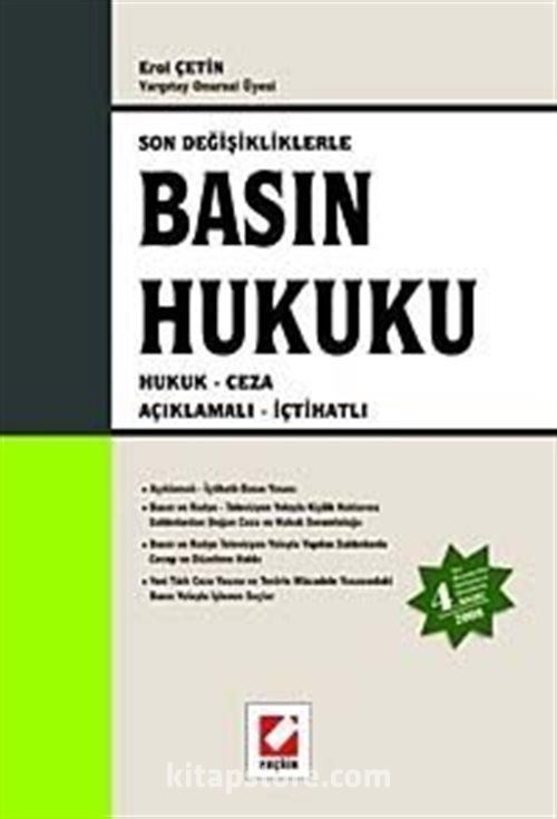 Açıklamalı - İçtihatlı Basın Yasası / Basın ve Radyo - Televizyon Yoluyla Kişilik Haklarına Saldırılardan Doğan Ceza ve Hukuk Sorumluluğu / Basın ve Radyo Televizyon Yoluyla Yapılan Saldırılarda Cevap ve Düzeltme Hakkı / Yeni Türk Ceza Yasası ve Terörle Mücadele Yasasındaki Basın Yoluyla İşlenen Suçlar
