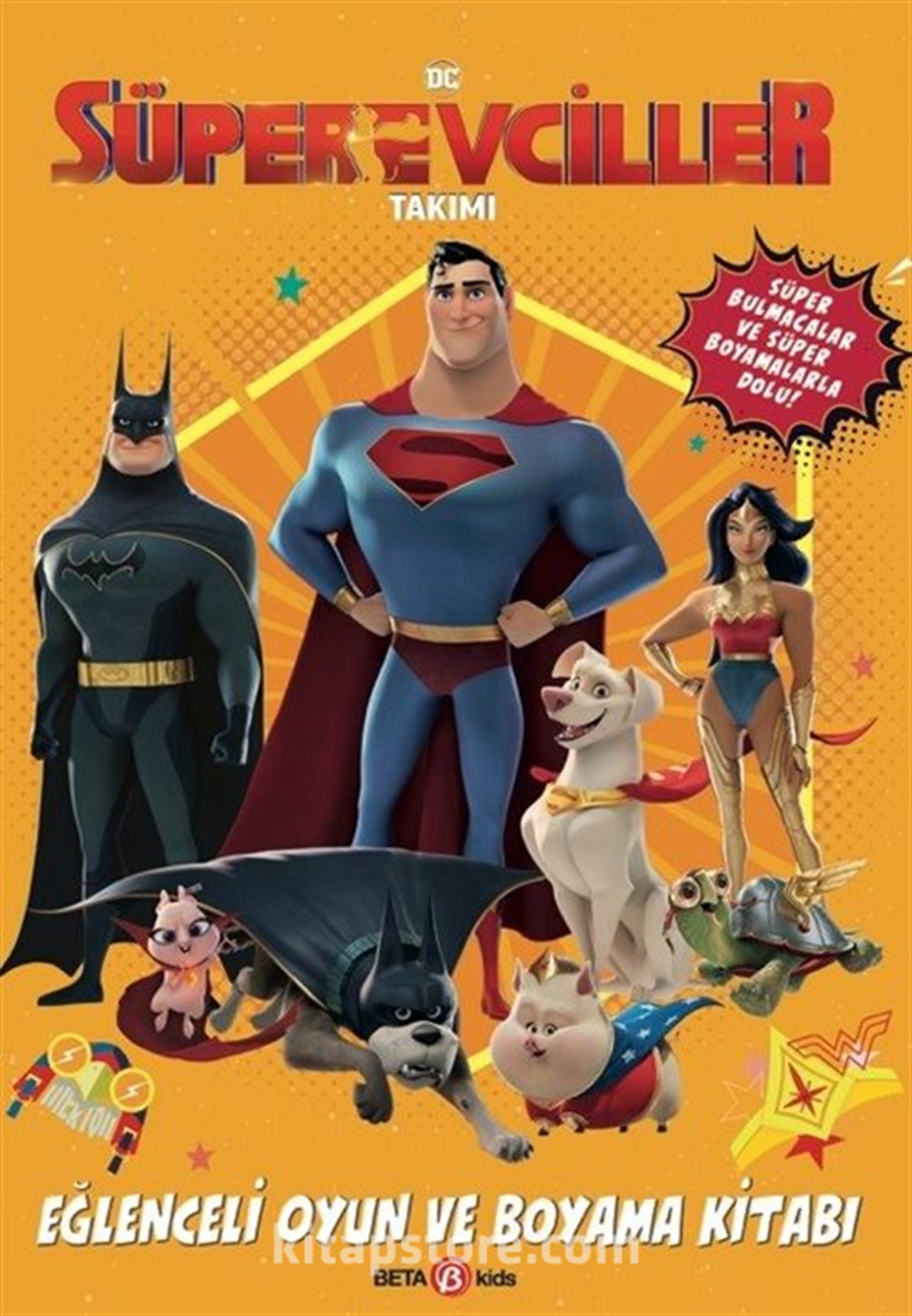 Bu müthiş aktivite kitabıyla DC Süper Evciller Takımı'yla birlikte dünyayı kurtarmaya hazır ol! Başrollerinde Adalet Birliği kahramanları ile DC Süper Evciller Takımı'nın yer aldığı bulmacaları çöz, aksiyon sahnelerini renklendir ve Metropolis şehrini keşfe çık!