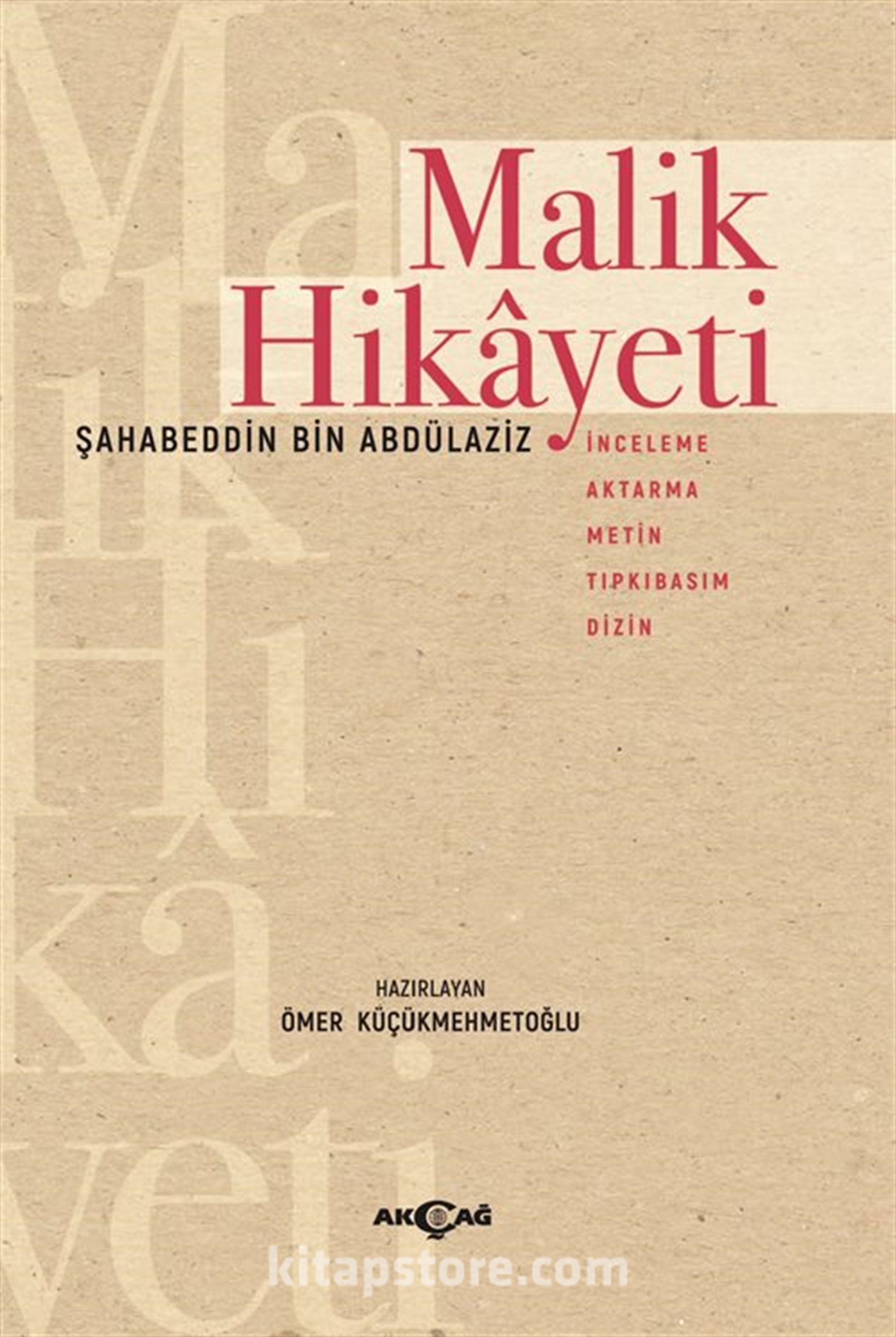 Malik Hikâyeti adlı eser 1906 yılında Kazan'da Arap alfabesiyle basılmıştır. Hikâye, Kazan Tatar Türkçesinin klasik imlâlı nesir örneklerindendir. Eser, Şam padişahı Bedreddin ile veziri Ati Elmüluk arasında dünyada gamsız kedersiz kimsenin olup olmadığı hakkındaki tartışmayla başlamakta ve yine bu tartışmayla bitmektedir. Zengin bir tüccarın oğlu olan Malik ile Gazne padişahı Bahaman'ın kızı Şirin arasında geçen maceralı aşk, hikâyedeki olay örgülerinden biridir. Felsefi içerikli eserde, yalanın insanı yarı yolda bırakacağı, kaderden kaçılamayacağı gibi konular da işlenmektedir. Tatar Türkçesi Arap alfabesi imlâ özellikleri, ünlüler, ünsüzler, çok imlalı şekiller incelenmiştir. Metinde geçen Arapça, Farsça şekillere, Türkçe ve Rusça sözcüklere ayrı başlıklar altında yer verilmiştir. Gramatikal indeks eserin sonuna eklenmiştir. Eserin tıpkıbasımı dil tarihi araştırmalarına kolaylık oluşturması için çalışmada çeviri yazıyla bakışımlı olarak verilmiştir.