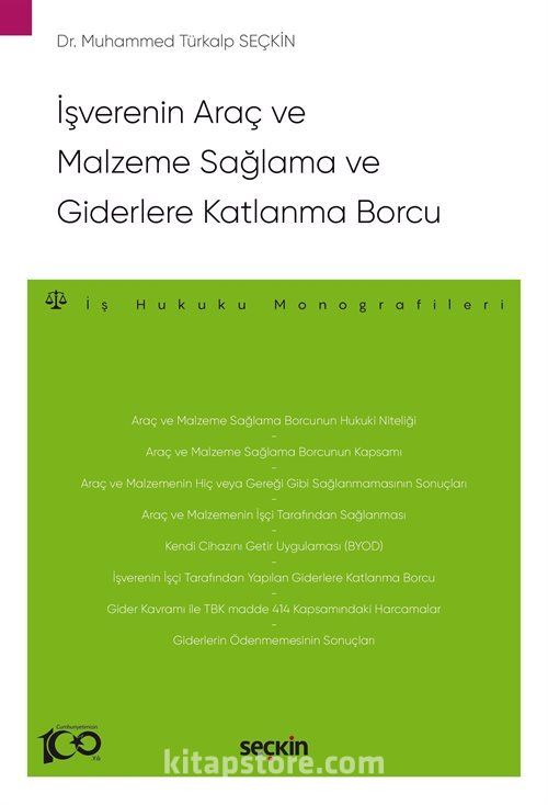 İşverenin araç ve malzeme sağlama ve giderlere katlanma borcuna ilişkin düzenlemeler 4857 sayılı İş Kanunu'nda değil, buna göre genel düzenleme niteliğindeki 6098 sayılı Türk Borçlar Kanunu'nun 413. ila 416. maddeleri arasında yer almaktadır. İşverenin araç ve malzeme sağlama borcu TBK m. 413 ve 415'te, giderlere katlanma borcu ise m. 414 ve 416'da düzenlenmiştir. Araç ve malzeme sağlama ve giderlere katlanma borcunun kapsamının tespitinde, 6331 sayılı İş Sağlığı ve Güvenliği Kanunu ile ilgili mevzuattaki düzenlemeler de belirleyicidir. Gerçekten iş sağlığı ve güvenliğini sağlamak için işçilere verilmesi gereken araç ve malzemeler ile yapılması gereken tüm giderlerin, iş sağlığı ve güvenliğinin sözleşmeler hukukundan kamu hukukuna dönüşmüş niteliği nedeniyle TBK'daki düzenlemelerden ayrıca ve özel olarak ele alınması gerekmektedir. Kitabın konusunu ana hatlarıyla TBK'da düzenlenmiş olan işverenin araç ve malzeme sağlama ve giderlere katlanma borcu oluşturmaktadır. Bu kapsamda araç, malzeme ve gider kavramlarının tanımı; işveren tarafından temin edilmesi gereken araç ve malzeme ile karşılanması gereken giderlerin kapsamı; işveren veya işçi tarafından temin edilmelerinin farklı ihtimaller dâhilinde hukuki nitelikleri; temin edilmeme hâllerinin hukuki sonuçları kitapta ele alınan temel meselelerdir.
